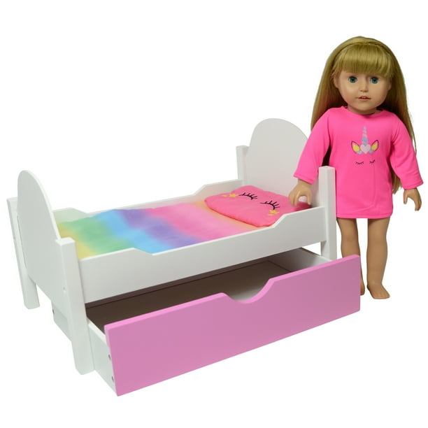 Unicorn Wooden Doll Bed With Trundle Fits 18 Inch Dolls Doll Bedding And Doll Unicorn Pajamas Included Walmart Com